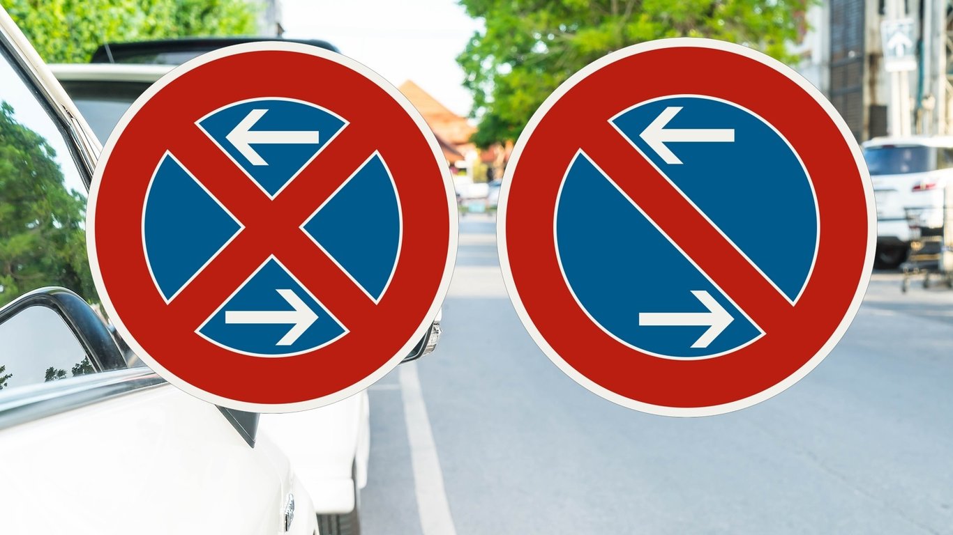 Такі правила стосуються й знака "Стоянку заборонено" з однією поперечною лінією, який дозволяє зупинку тривалістю до однієї хвилини. Відмінність від української системи полягає в тому, у нас аналогічну функцію виконують додаткові таблички з чорними стрілками під основним знаком, тоді як у Німеччині ці символи інтегровані безпосередньо в поле знака.