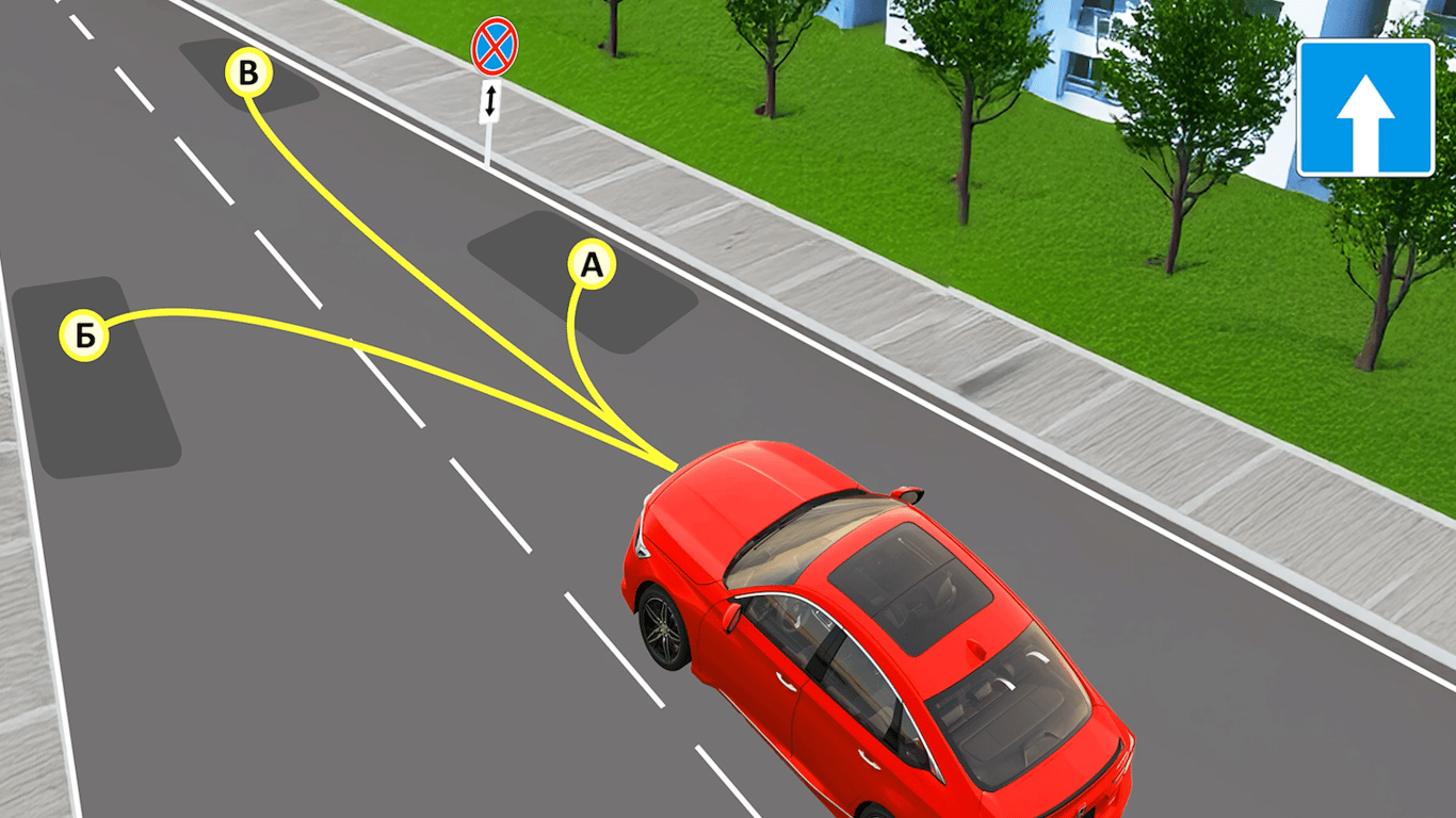 Отже, серед усіх місць, зображених на малюнку, дозволеним для паркування є Б.