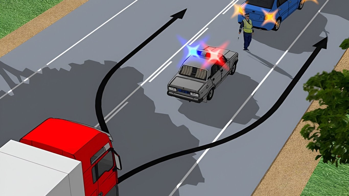 Задача з теми про рух транспортних засобів зі спеціальними сигналами. Як водієві вантажного автомобіля проїхати перешкоду у зображеній на малюнку ситуації?