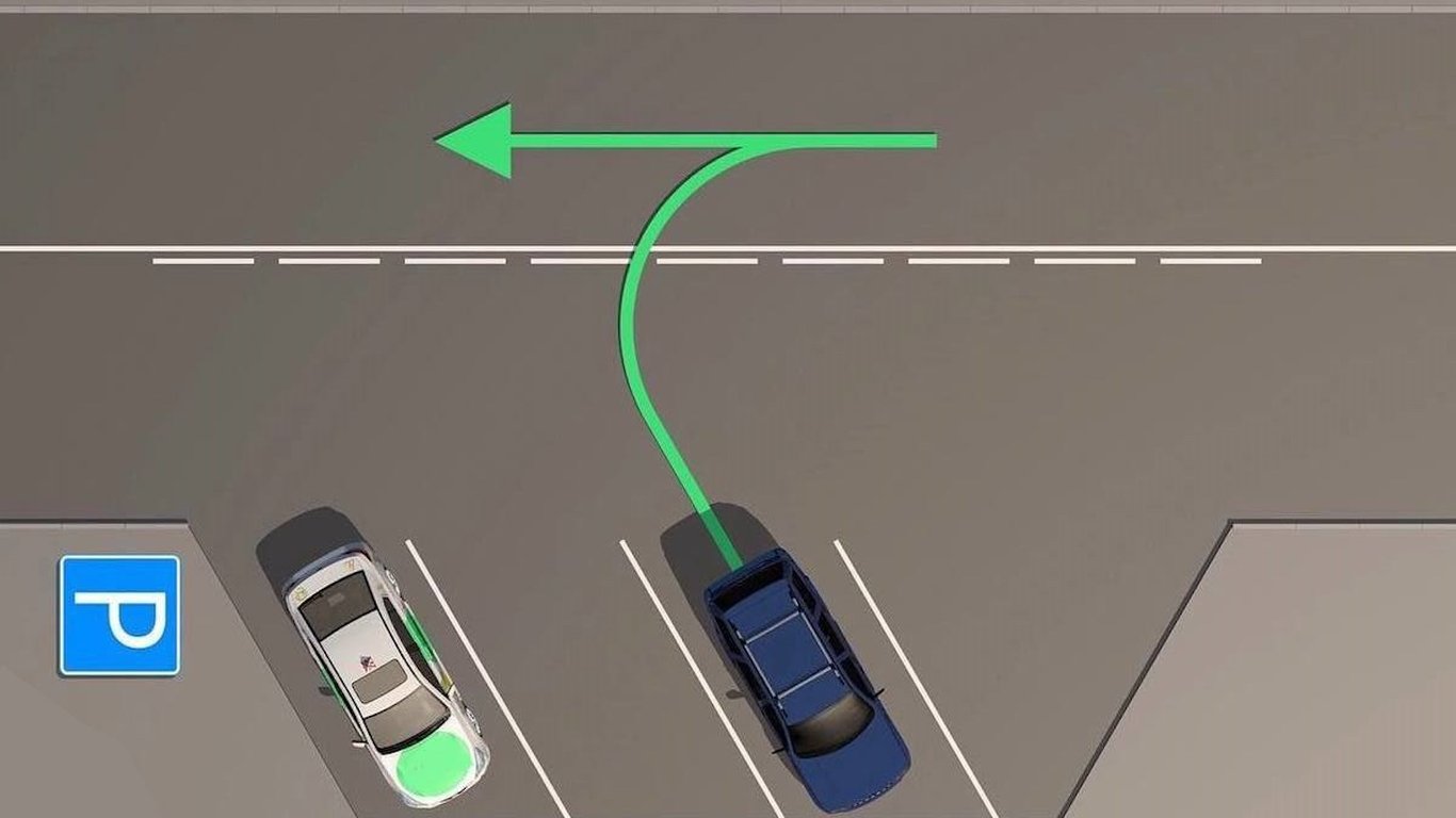 Задача про початок руху та зміну його напрямку. Чи дозволено водію синього автомобіля виїзд зі стоянки за зображеною на малюнку траєкторією?