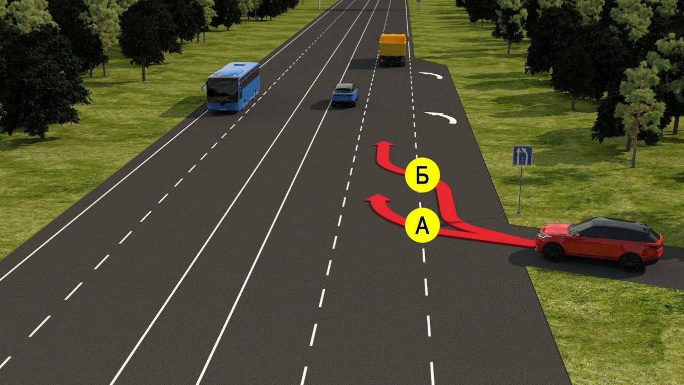Таким чином, водій червоної машини зобов'язаний заїжджати на автомагістраль через смугу для розгону.