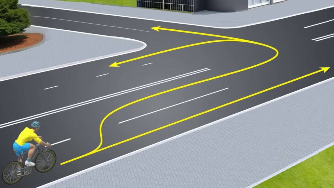 Видно, що велосипедист перед поворотом ліворуч або розворотом завчасно займає відповідне крайнє положення на проїзній частині. Здавалося б усе добре. Але є один нюанс, про який мало хто пам'ятає.