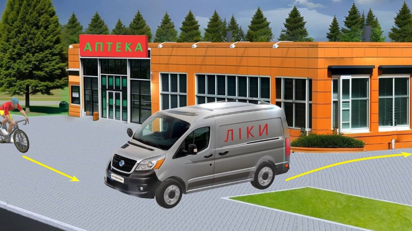 Водитель автомобиля двигается по тротуару для того, чтобы подъехать в аптеку и разгрузить лекарства. Он обслуживает предприятие, расположенное непосредственно возле тротуара, а значит, правил не нарушает.