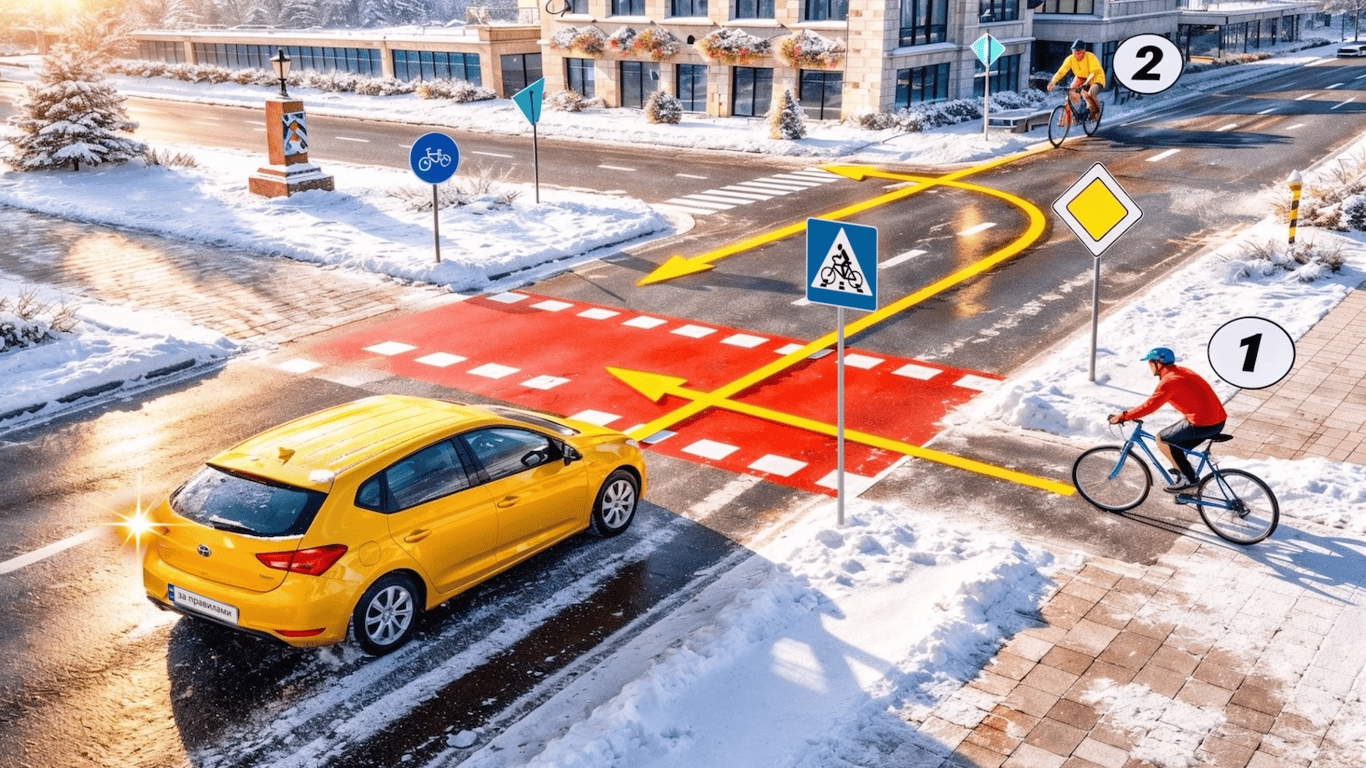 Сложный тест ПДД — какому велосипедисту надо уступить дорогу