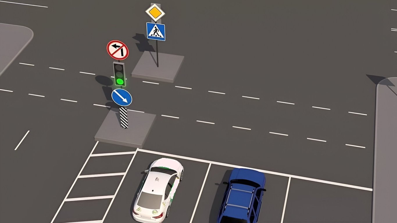 Задача по теме о регулировании дорожного движения и о начале движения и изменении его направления. В каких направлениях можно продолжить движение водитель белого автомобиля в изображенной на рисунке ситуации?