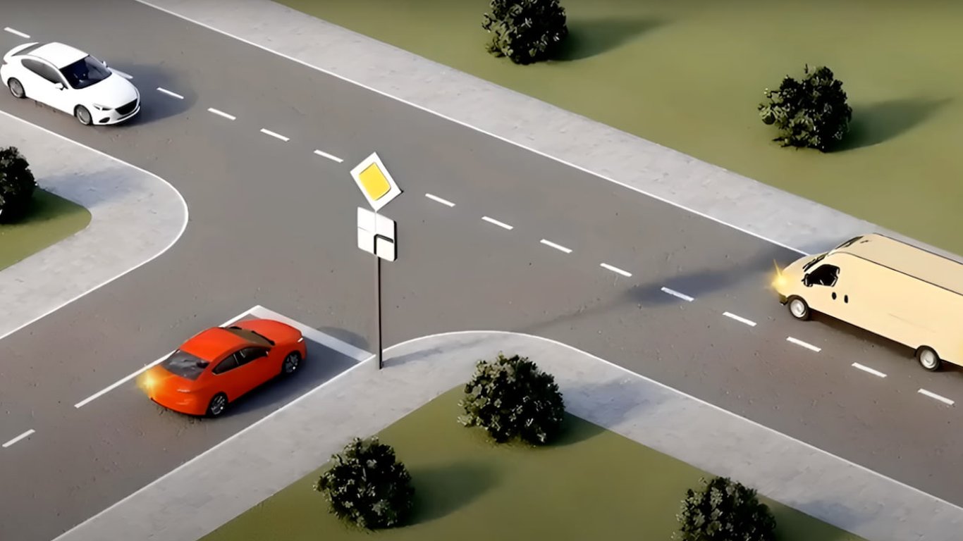 Задача по теме о проезде перекрестков. Кому уступит водитель красного автомобиля в изображенной на рисунке ситуации?