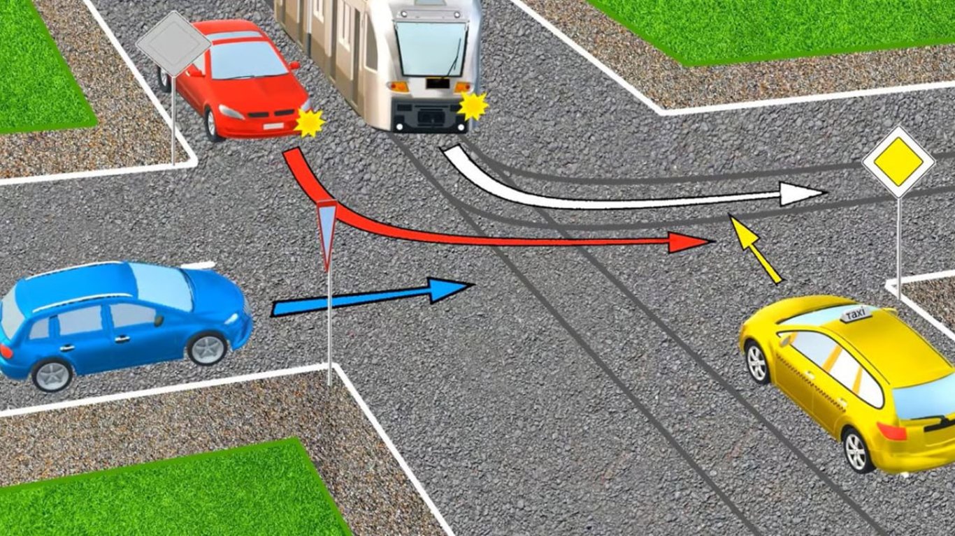 Таким образом водитель такси обязан уступить дорогу трамваю, ведь они находятся на равнозначных дорогах, где преимущество всегда имеет трамвай.