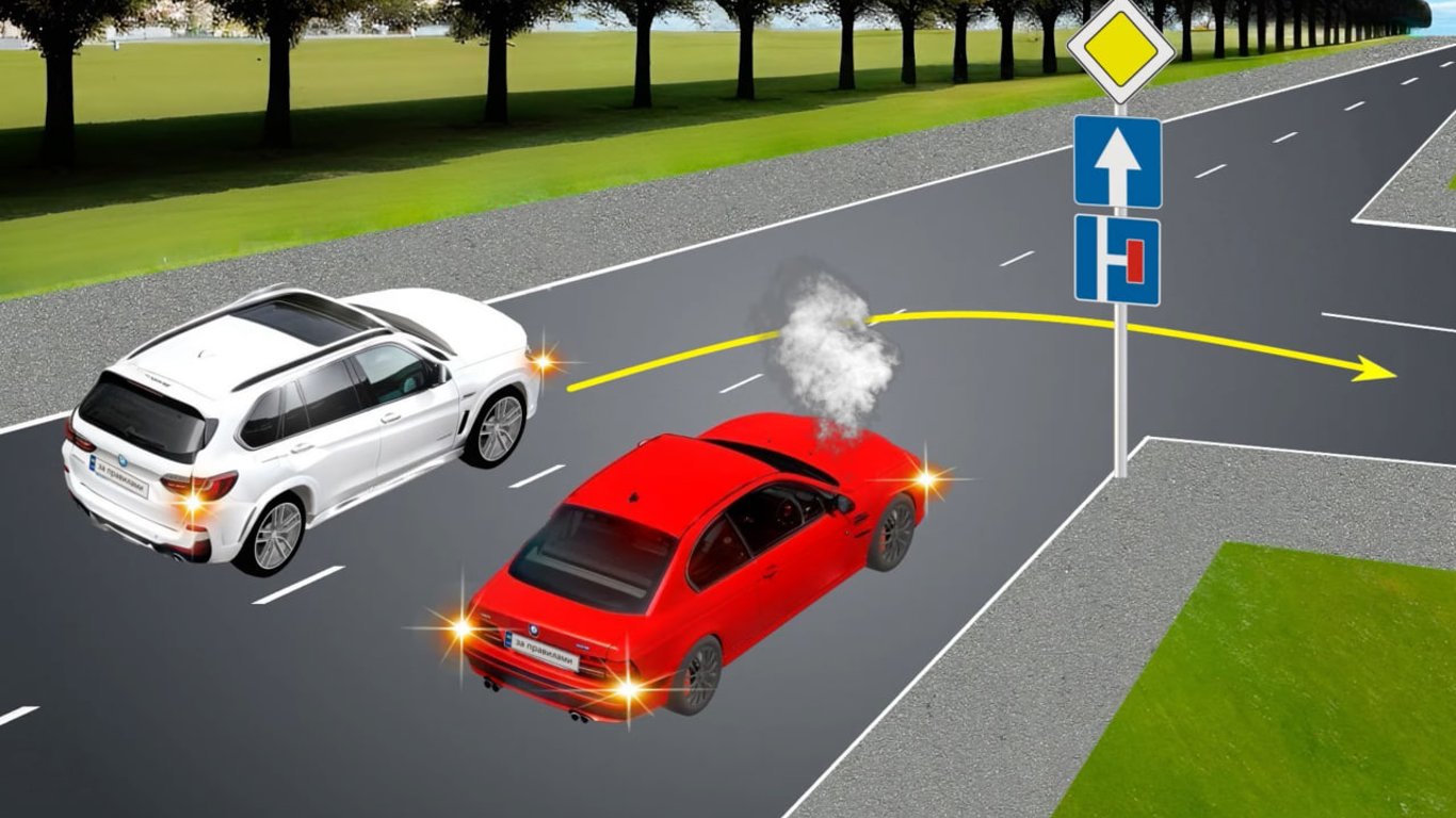 Но водитель белого автомобиля не виноват, что правая полоса занята сломанным красным авто.
