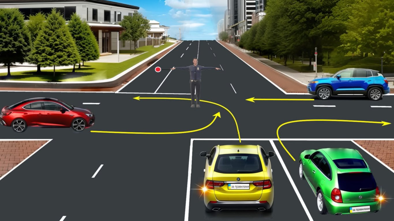 Тест ПДД с регулировщиком — кто может продолжать движение