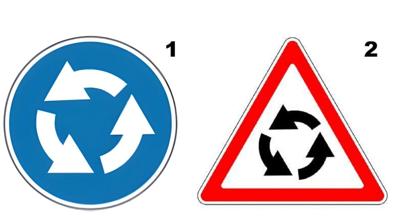 Задача на знание дорожных знаков в Украине. Какой из изображенных на рисунке дорожных знаков предупреждает о приближении к перекрестку с круговым движением?