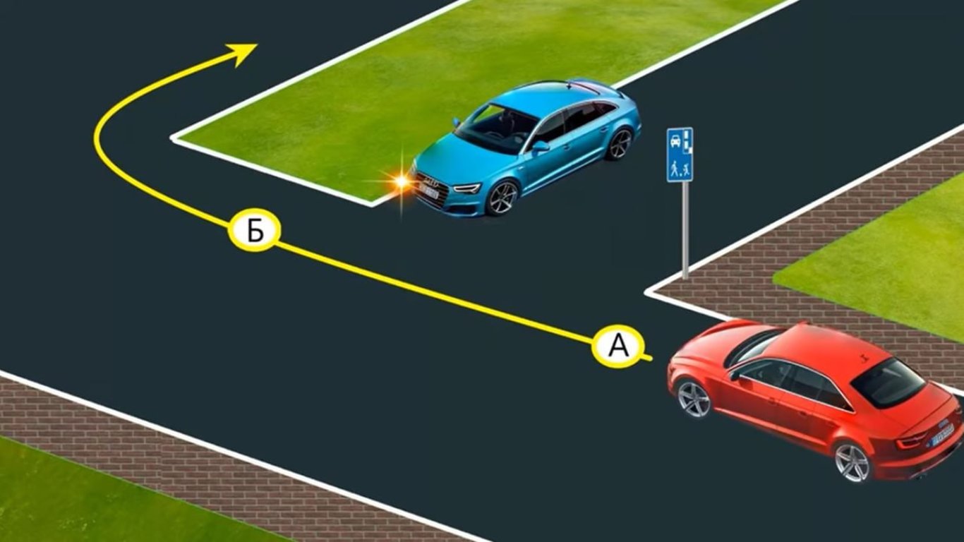 Хотя, чтобы не вводить водителя синего авто в заблуждение, водителю красного следует включить указатель поворота в месте "Б". Так будет гораздо безопаснее.
