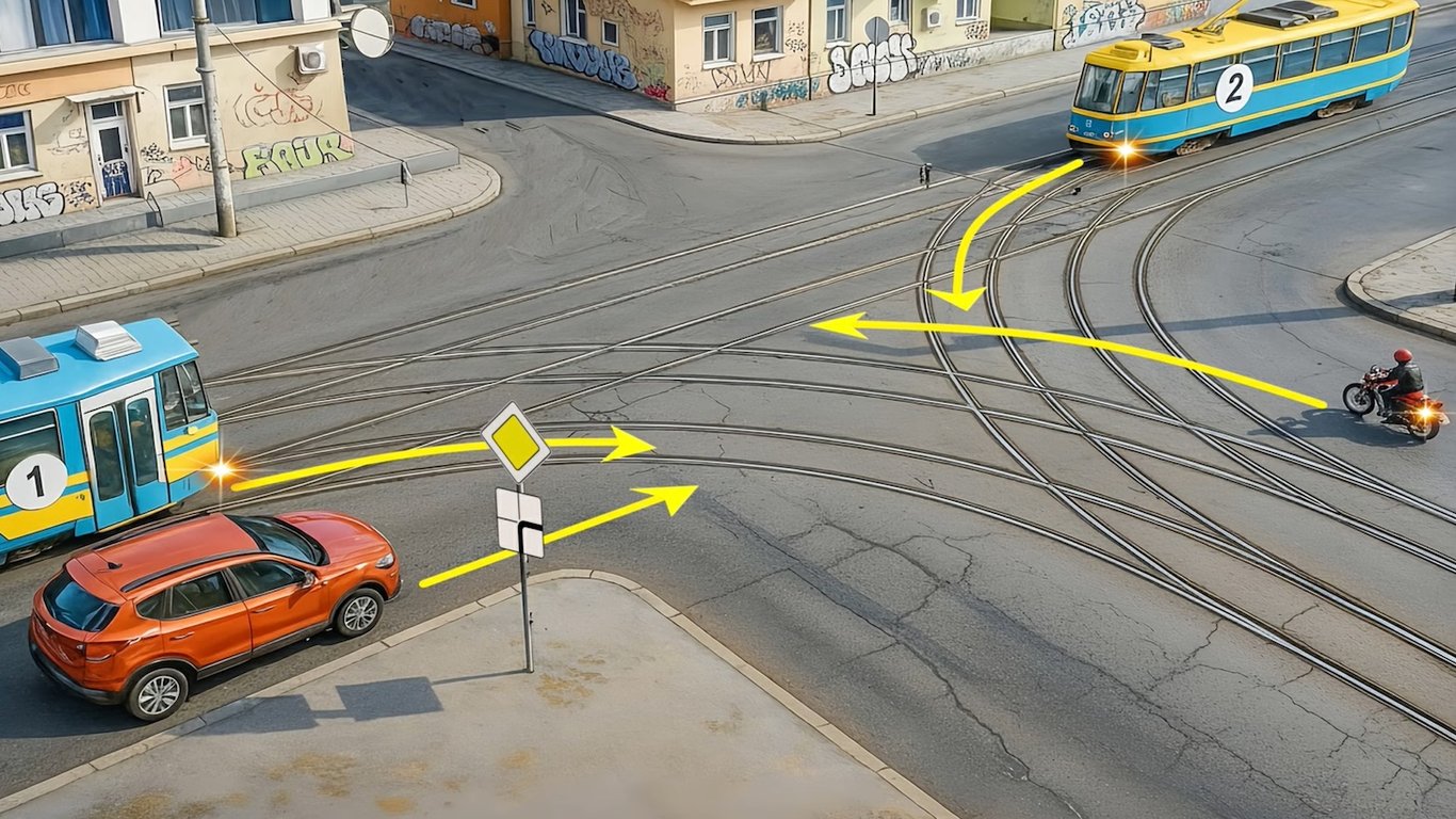 Тест ПДР — хто проїде останнім перехрестя з трамваями