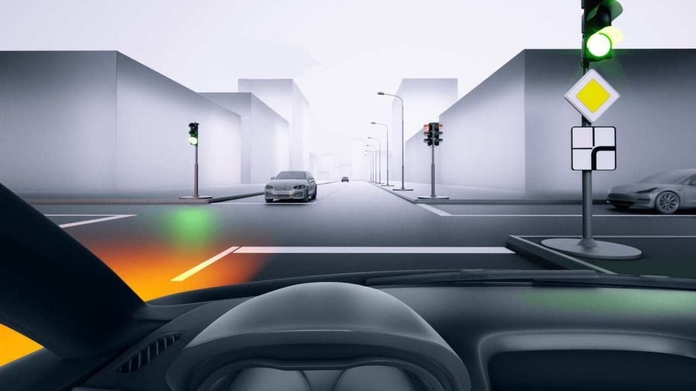 На перехресті ви маєте намір повернути ліворуч, а водій зустрічного автомобіля проїжджає прямо. Світлофор подає зелений сигнал, який дозволяє рух в усіх напрямках. При цьому на дорожні знаки пріоритету звертати увагу у зображеній ситуації не варто.