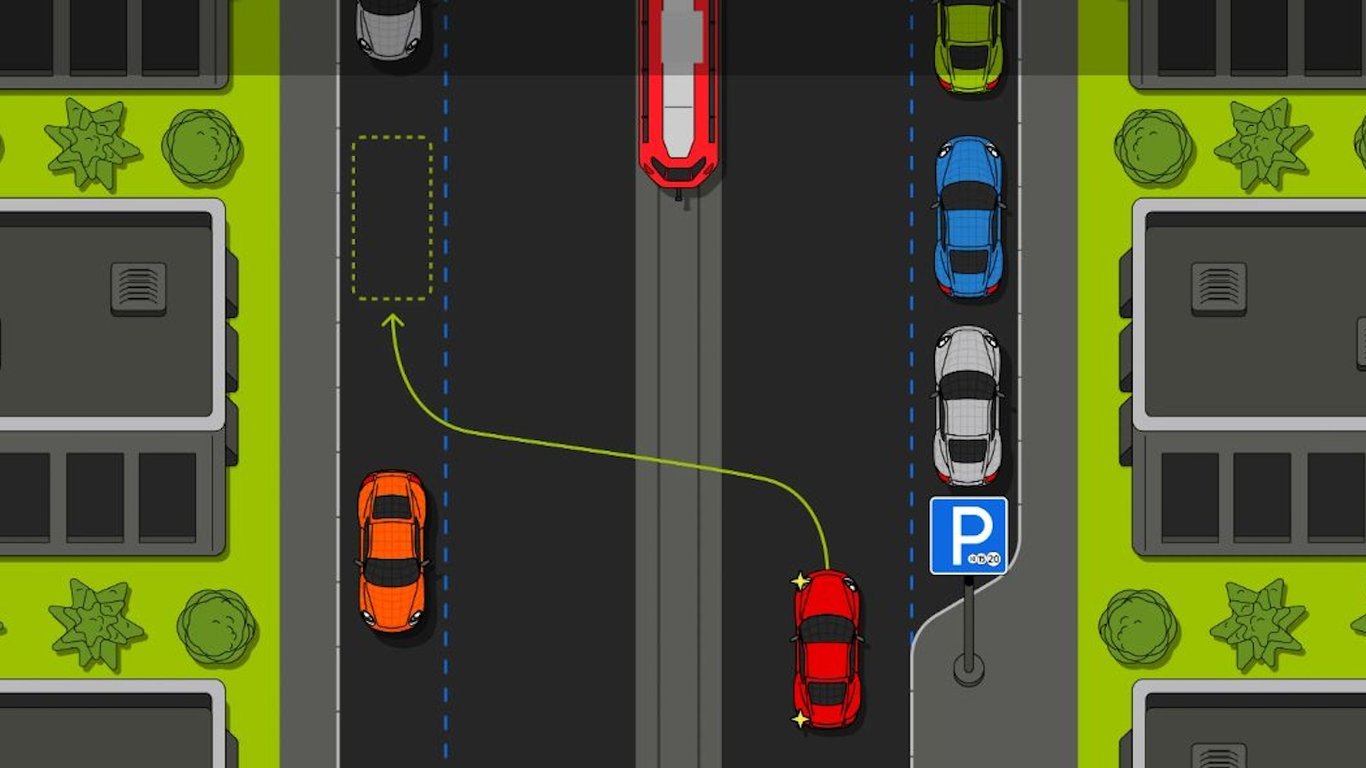 Водій помітив на зустрічному боці вулиці вільне місце для стоянки. Але, щоб до нього дістатися йому потрібно перетнути трамвайні колії.
